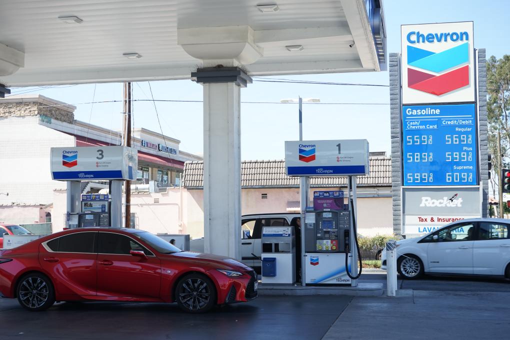 这是3月17日在美国加利福尼亚州洛杉矶县埃尔蒙特市拍摄的一家加油站。新华社发(曾慧摄)