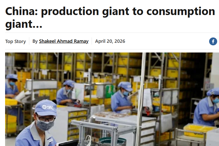 巴基斯坦《新闻报》4月20日刊发文章称,在全球贸易环境不确定性增加的背景下,中国正在把扩大内需、提振消费作为新的增长抓手。在巩固制造业优势的同时,中国正加快由“生产大国”向“消费大国”转型,这不仅将为自身经济注入新动能,也将为全球市场带来更大机遇。
