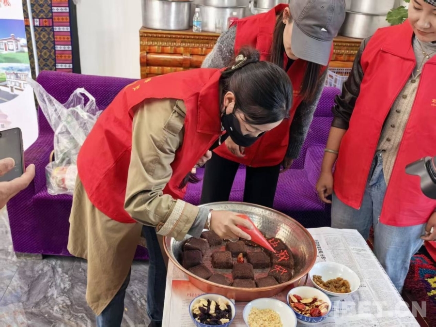 活动现场洋溢着温馨祥和的节日气氛。4户近期入住新居的农牧民家庭,与来自县、镇、村的志愿者和援建施工人员欢聚一堂。大家亲手制作富有民族特色的藏式月饼,鸡爪谷与青稞的醇香、酥油的浓郁,搭配花生、核桃、红枣和葡萄干的丰富口感,不仅传递出传统节日的韵味,更寄托着对新生活甜美如蜜的真诚期盼。