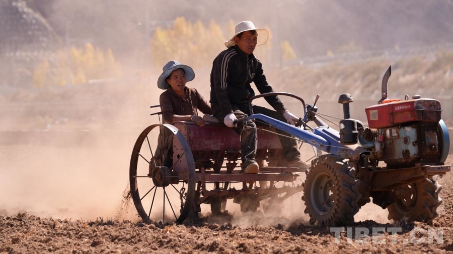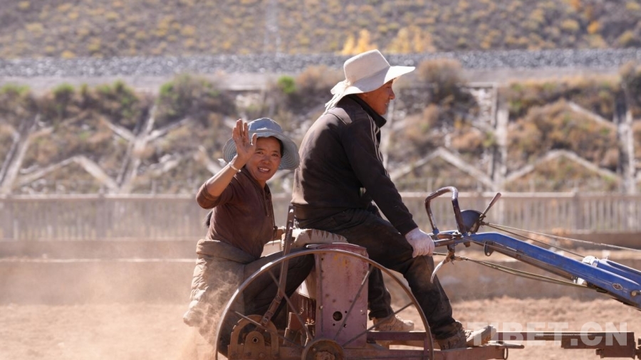 中国西藏网讯 十月的西藏山南市加查县,雅鲁藏布江畔秋意正浓。10月21日,记者在冷达乡嘎玛吉塘村看到,田间地头处处是繁忙的冬播景象:拖拉机轰鸣着往来穿梭,铁犁翻起湿润的新土,泥土清香扑面而来;村民们手执传统农具,沿着整齐的田垄缓缓前行,弯腰播撒下一粒粒饱满的冬小麦种子。据当地村民介绍,嘎玛吉塘村有着悠久的冬播传统。每年10月下旬,当地便会开启冬播工作,主要种植冬小麦。这些种子在土地中越冬,于来年7月迎来丰收。紧接着在8月,村民们又会马不停蹄地开始新一轮播种,主要为牲畜种植饲料,形成了一年两熟、土地不休的良性循环农业生产模式。(中国西藏网 记者/次旦拉姆)