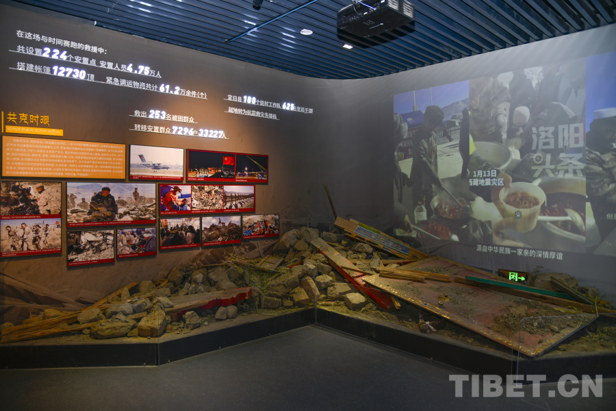 图为森嘎村村史馆中抗震救灾展陈 摄影:赵振宇