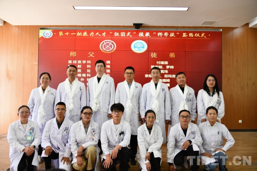 图为第十一批医疗人才“组团式”援藏“师带徒”签约仪式 受访者供图