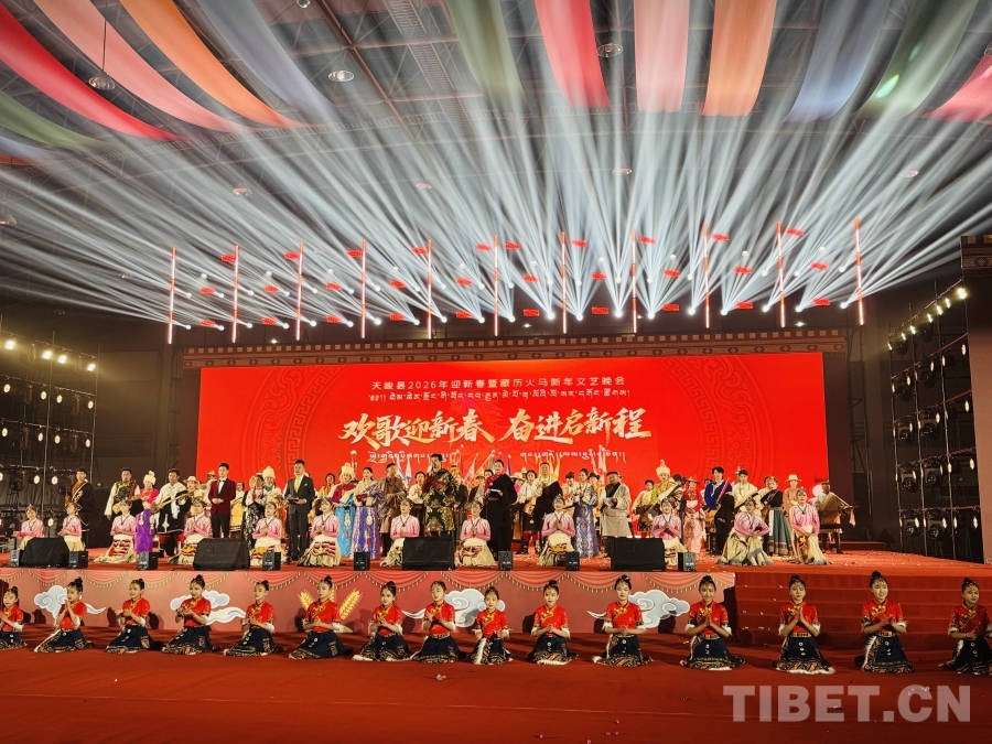 中国西藏网讯 1月30日晚,青海省海西蒙古族藏族自治州天峻县文化活动中心灯光璀璨、歌舞飞扬,2026年藏历火马新年文艺晚会在这里举行。晚会以“欢歌迎新春·奋进启新程”为主题,为全县各族群众奉献了一场精彩纷呈的文化盛宴。