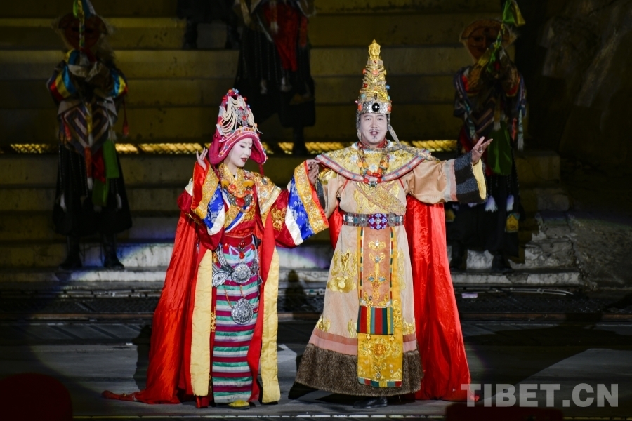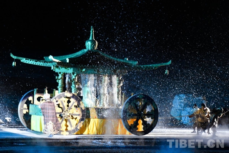 中国西藏网讯 3月22日,《文成公主》大型实景剧第十四季开演。该剧以1300多年前文成公主与松赞干布和亲联姻、促进民族融合发展的历史故事为核心,深度融入数十种非物质文化遗产,艺术再现民族文化交融盛景。《文成公主》实景剧第十四季再添创新亮点:在舞台背景山体呈现超大巨幅画面,全景展现大明宫恢弘气势与雪域高原壮美辽阔,进一步提升剧目视觉冲击力与文化辨识度。(中国西藏网 记者/赵振宇 次旦拉姆)
