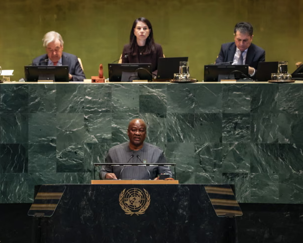 3月25日投票前,加纳总统约翰·德拉马尼·马哈马在纽约联合国大会发表讲话。