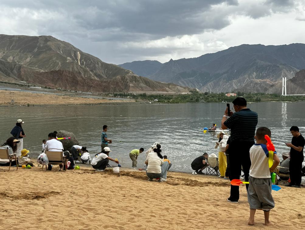 5月2日,游客在尖扎县昂拉乡德吉村境内的黄河岸边游玩。新华社记者 解统强 摄