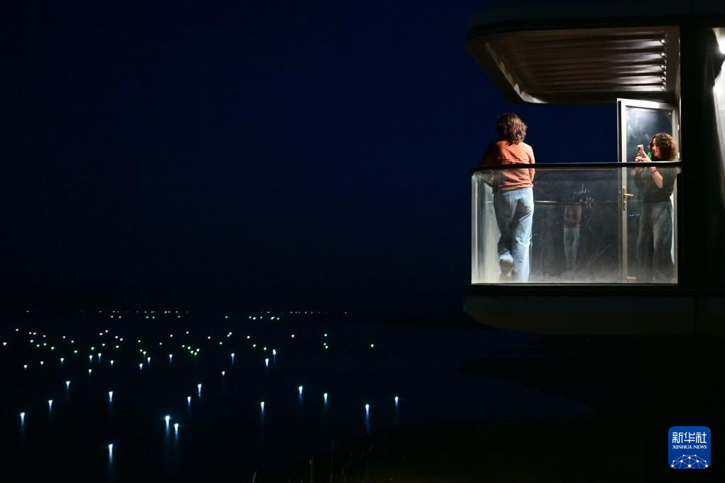 10月17日,龙羊峡库区水面亮起盏盏渔灯(无人机照片)。新华社记者 齐芷玥 摄