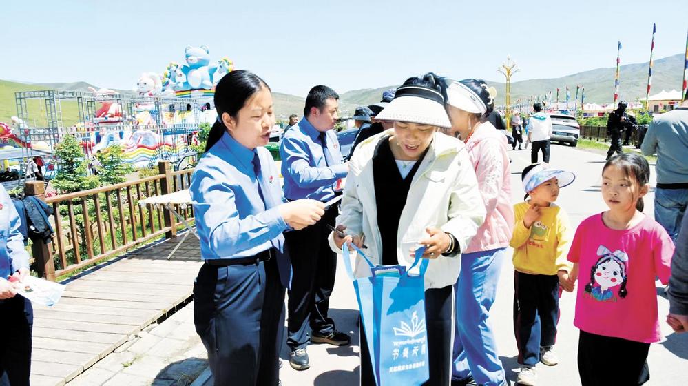 天祝县检察院检察干警深入牧区宣传“天祝白牦牛”品牌保护法律知识。
