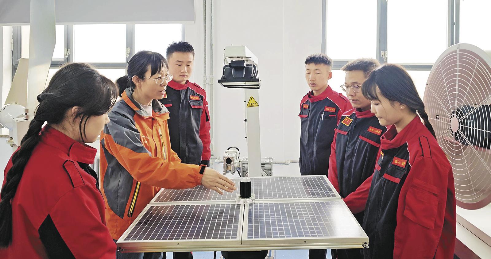 开展太阳能光伏发电技术实训课。本报记者 李庆玲 摄