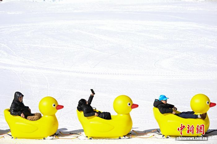 1月29日,游客乘坐“大黄鸭”赏雪。中新社记者 李嘉娴 摄