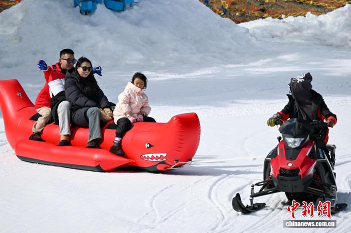 1月29日,游客乘坐“雪地鲨鱼船”体验冰雪魅力。中新社记者 李嘉娴 摄