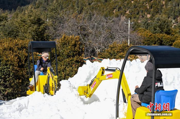 1月29日,小朋友体验雪地小挖机。中新社记者 李嘉娴 摄