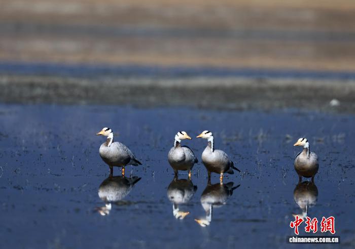 1月23日,4只斑头雁在纳帕海休憩。黄兴鸿 摄