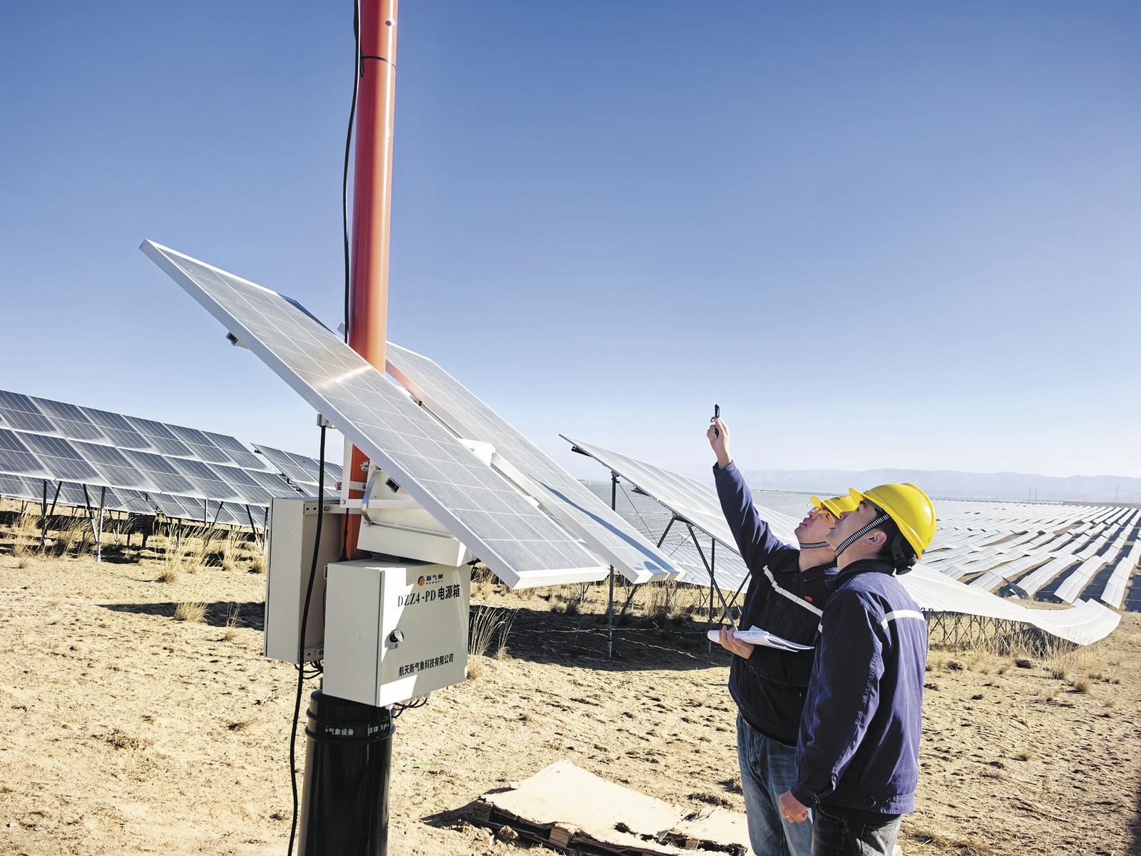 国能共和光伏电站气象站内,工作人员开展巡检工作。