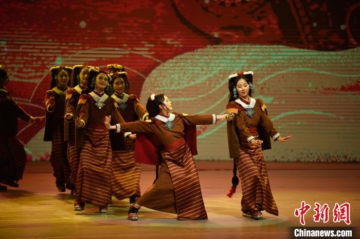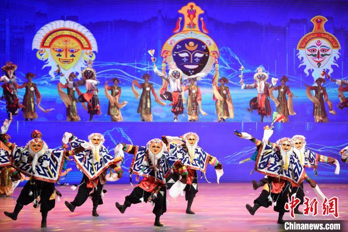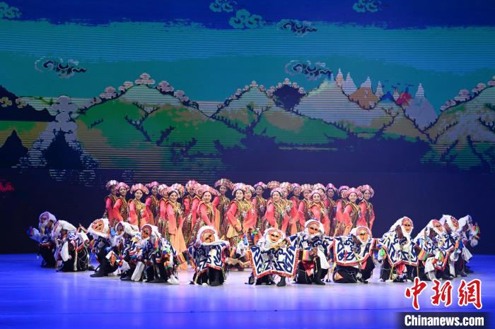 5月17日晚,2025年“雪域古城·圣地拉萨”文化旅游节“心约拉萨”专场文艺演出在西藏大剧院举行。演出在《吉祥颂》中拉开序幕,随后,次旦朗杰、次仁卓嘎等带来歌曲《心约拉萨》。京剧与藏戏碰撞的《古韵新话赞拉萨》将现场气氛推向高潮。当晚,《哎玛嚯》《吉曲河畔》等节目轮番上演,为观众带来了一场沉浸式视听盛宴 ,让大家在歌舞诗画中感受拉萨的人文底蕴与时代活力。 中新社记者 贡嘎来松 摄