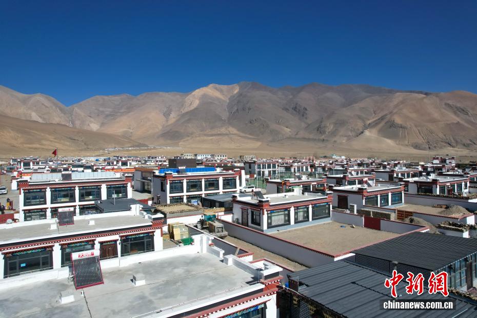 2025年1月7日,西藏定日发生6.8级地震。时隔近一年,1月5日,记者走进西藏自治区日喀则市定日县长所乡森嘎村,只见藏式新房错落有致,崭新的房屋内饰精致美观,屋顶上,太阳能热水器整齐排列,水电气等生活配套一应俱全。村内超市里,各类蔬菜瓜果摆放得满满当当,货源充足。村民们三四人围坐在一起玩骰子,欢声笑语不断,村庄民生秩序已全面恢复。据悉,此次日喀则地震灾后重建覆盖7县47乡镇486村,2.2万余户重建民房、1.05万余户维修加固民房已全部竣工交付,受灾民众喜迁新居。图为重建后的森嘎村一角。(无人机照片)
