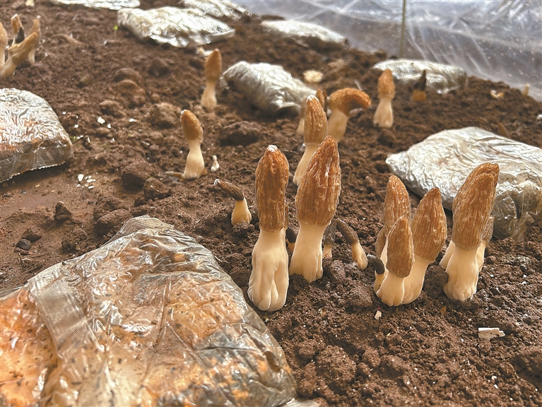 图为破土而出的羊肚菌。本报记者 贡秋曲措 摄