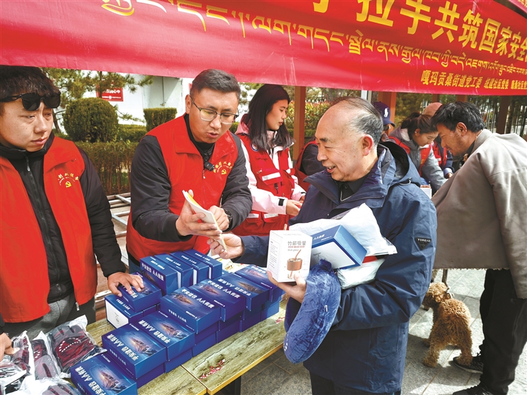 4月15日是第十一个全民国家安全教育日。城关区嘎玛贡桑街道通过集中宣讲、现场答疑、发放宣传资料等方式普及国家安全相关知识,切实提升辖区群众国家安全意识。