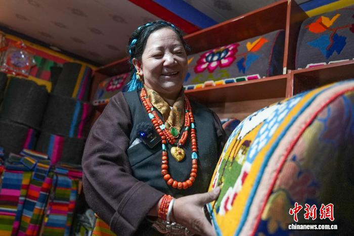3月25日,“记录雪域民族团结 见证珠峰发展新篇——石榴花开心连心”网络主题活动采访团,走进西藏日喀则市岗巴县乃村顺心编织合作社,探访当地传统民族手工艺发展新貌。据了解,合作社理事长德吉自2015年深耕卡垫、氆氇等传统手工编织技艺,凭借精湛手艺与家乡情怀,成为当地手工艺带头人。2019年,在乡党委、政府及上级部门扶持下,她牵头成立顺心编织合作社,2025年在各方持续支持下,合作社发展再上新台阶。如今,合作社已吸纳28名妇女就近稳定就业,让传统“指尖技艺”成功转化为“指尖经济”。截至目前,合作社累计销售各类手工编织产品280余件,实现直接经济增收约134万元人民币,切实拓宽了乡村妇女增收渠道。德吉带领团队坚守传承、勇于创新,将现代审美与实用需求融入民族服饰、卡垫等特色产品中,产品在区内销路稳步拓展,品牌影响力持续提升,为雪域高原乡村振兴注入了鲜活动力。图为德吉正在展示产品。贡确 摄