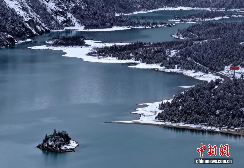 3月25日,西藏昌都然乌湖雪后景色。然乌湖位于西藏昌都市八宿县然乌镇境内,是山体滑坡或泥石流堵塞河道而形成的堰塞湖。雪后然乌湖湖水如翠,美如画卷。中新社记者 李林 摄(无人机照片)