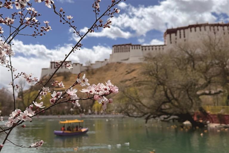 四月的拉萨,春和景明。布达拉宫脚下的宗角禄康公园繁花渐次绽放,湖面波光粼粼,赤麻鸭等水鸟悠然游弋,游客乘舟赏春、市民漫步休闲,一幅“春意浓、幸福显”的春日生态生活画卷在高原古城徐徐铺展,尽显拉萨春日的诗意与烟火气。
