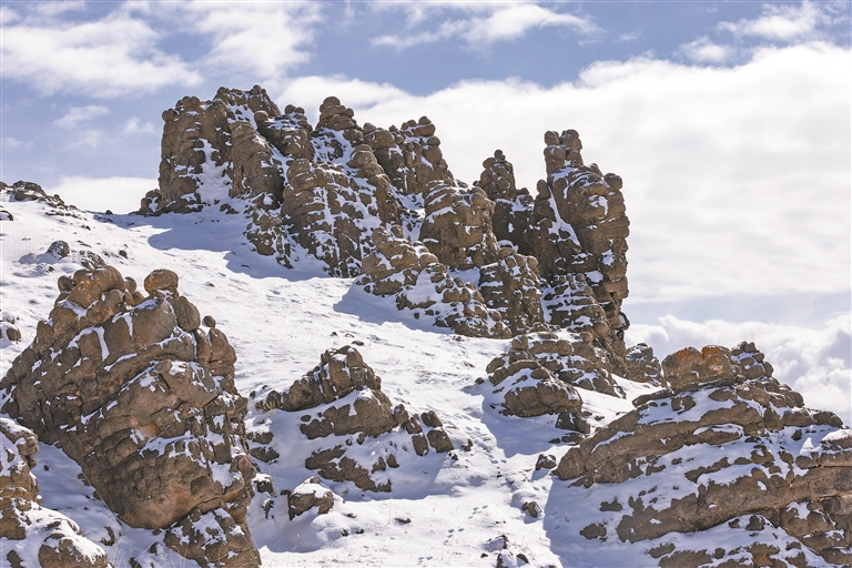 4月10日拍摄的“巴毛穷宗”地区玄武岩风蚀柱地貌。新华社记者 姜帆 摄