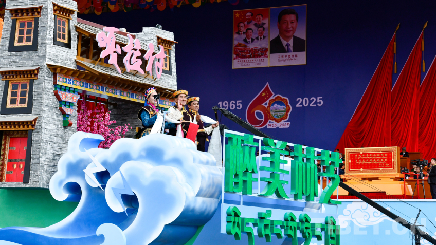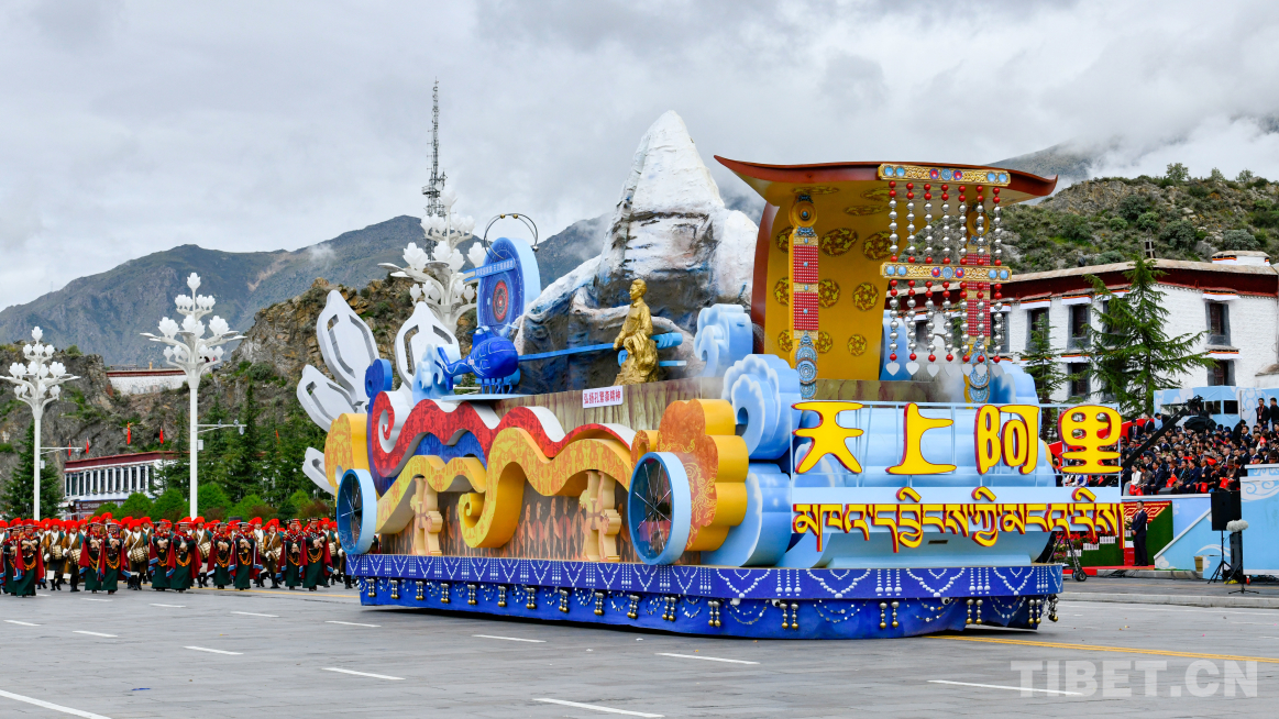 “走向未来”彩车,整体呈现数字“60”字样,车身造型融入华表、红色飘带、中国结等元素,彰显了西藏各族干部群众奋进新征程、建设团结富裕文明和谐美丽的社会主义现代化新西藏的信心和决心。(中国西藏网 记者/王淑 赵振宇 德吉卓玛 次旦拉姆 旦曲 贾华加 赵钊 姚浩然 刘莉 边子捷 冯重霖 杨眉笑)