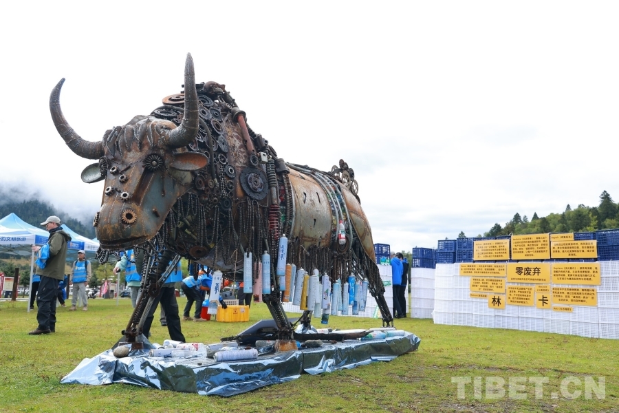 在鲁朗的青青草地上,“零废弃林卡”活动将环保理念融入生活。参与者享用环保野餐,欣赏“高原守护艺术展”,并利用徒步中收集的废弃塑料瓶,共同创作了一座牦牛造型环保艺术装置。这件将废弃物转化为公共艺术的作品,将永久留存于高原,成为倡导文明旅游、引发环保思考的生动载体。在藏族弹唱与守护故事的氛围中,零废弃从概念转化为可感可知的生活方式。