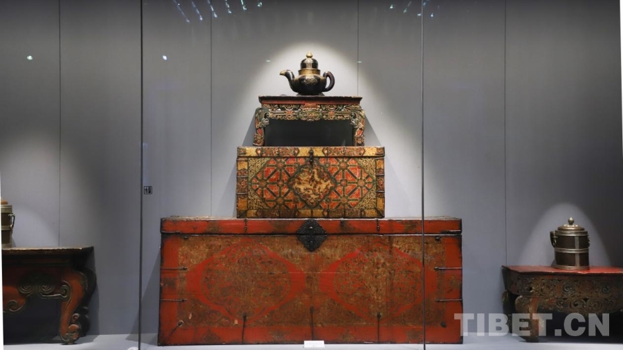 图为展出的木箱和器具