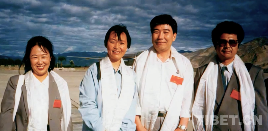 图为雷菊芳(左二)1995年随中国民营科技实业家光彩事业赴藏考察团赴藏考察
