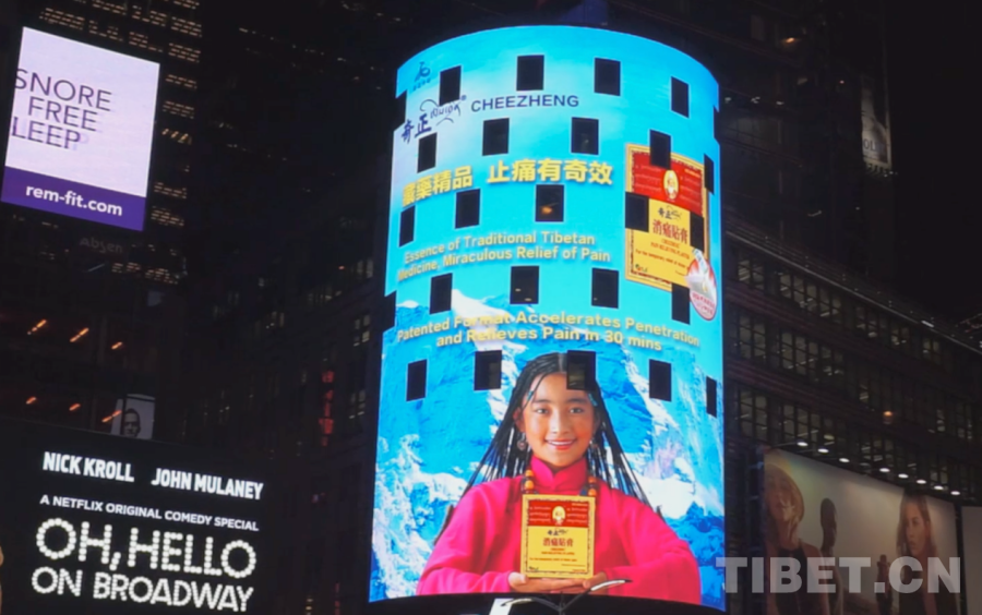 图为奇正藏药广告登上美国纽约时代广场纳斯达克大屏幕,将藏医药向世界展示