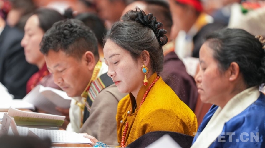 图为人大代表听取和审议西藏自治区高级人民法院工作报告 摄影:贾华加