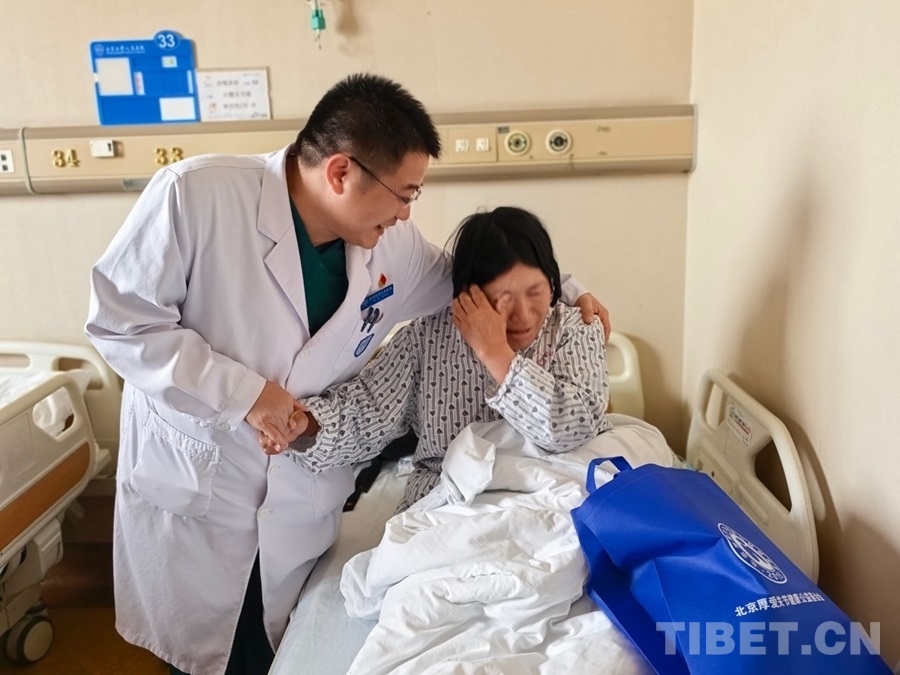 图为患者西嘎曲珍难掩感激的泪水 摄影:周晴晴