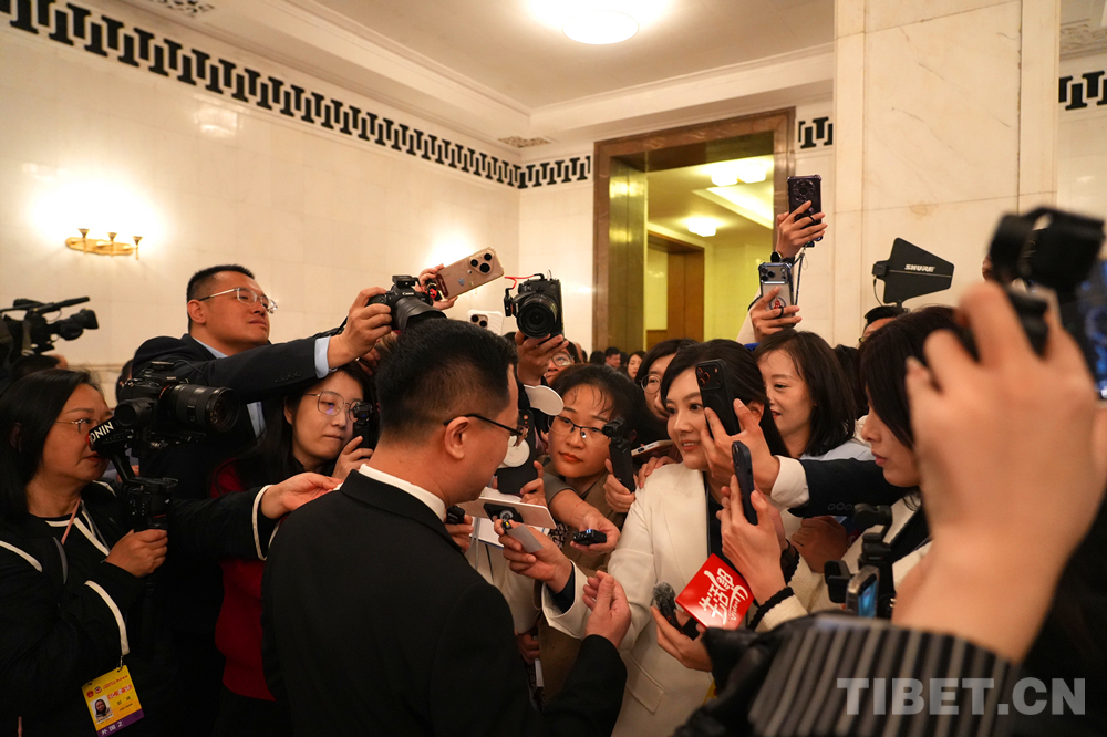 中国西藏网讯 3月12日,十四届全国人大四次会议第三场“代表通道”集中采访活动在人民大会堂举行,邀请部分全国人大代表接受采访。(中国西藏网 记者/刘莉 边子捷摄影报道 编辑/周晶)