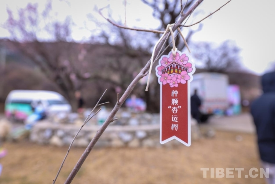 大家分工协作,扶苗、填土、浇水,每道工序都做得认真细致。现场专门设置了“杏运树”树苗领取区,游客可免费认领专属树苗,亲手栽种后,还能为树苗挂上刻有心愿的专属挂牌。来自成都的游客李女士和家人一起种下一棵杏树,并在牌上写下“愿家人平安,与道孚再相逢”的心愿。“在盛开的杏花林边再添新绿,这个春天来得特别有意义。”她说。