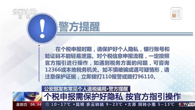 警方提醒:个税申报需保护好隐私,按官方指引操作