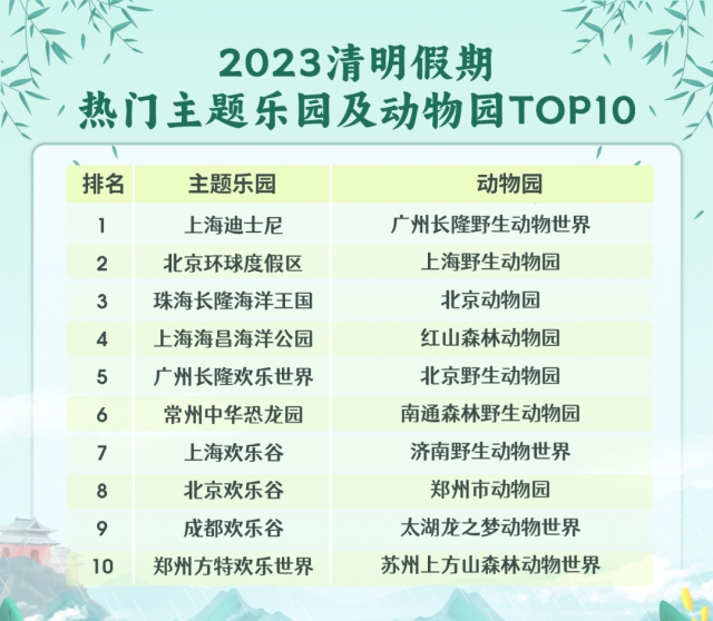 《报告》显示,各地主题乐园、野生动物园、海洋馆清明假期期间的预订量靠前,围绕一些知名主题乐园推出的亲子一日游线路也深受欢迎。