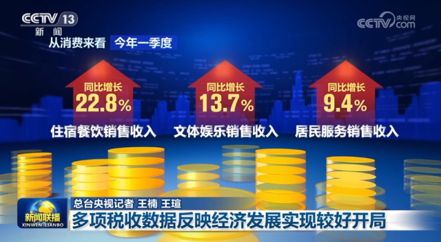 从消费来看,一季度,住宿餐饮、文体娱乐、居民服务等销售收入同比分别增长22.8%、13.7%和9.4%,回升较为明显,潜力加快释放。
