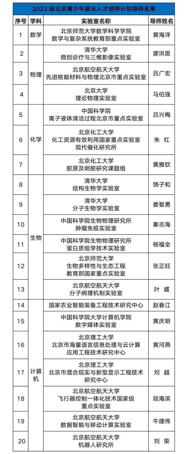 中国青年报客户端北京4月10日电(中青报·中青网记者 樊未晨)记者今天从北京市教委官方微信“首都教育”获悉,59名中学生入选“北京青少年拔尖人才培养计划”。