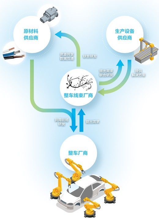 以汽车电路的主体——整车线束为例,仅围绕一家龙头民营企业,就有近50家供应商聚集昆山,在这条成熟的产业链上,上下游分工明确,供需合作紧密。