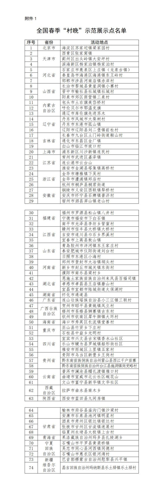文旅部公布2023年“四季村晚”主会场和示范展示点名单