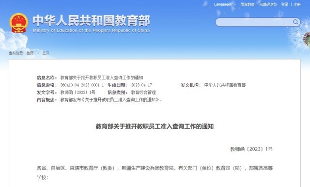 教育部:对中小学校拟聘用教职员工在入职前进行查询