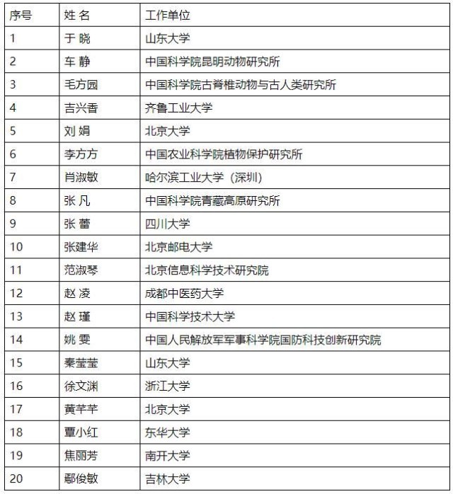 第十八届中国青年女科学家奖揭晓 20人5支团队获奖