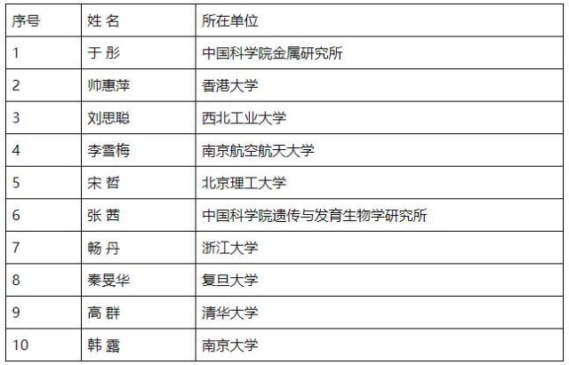 第十八届中国青年女科学家奖获奖者名单
