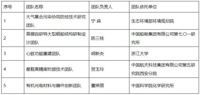 (按团队负责人姓氏笔划排序)