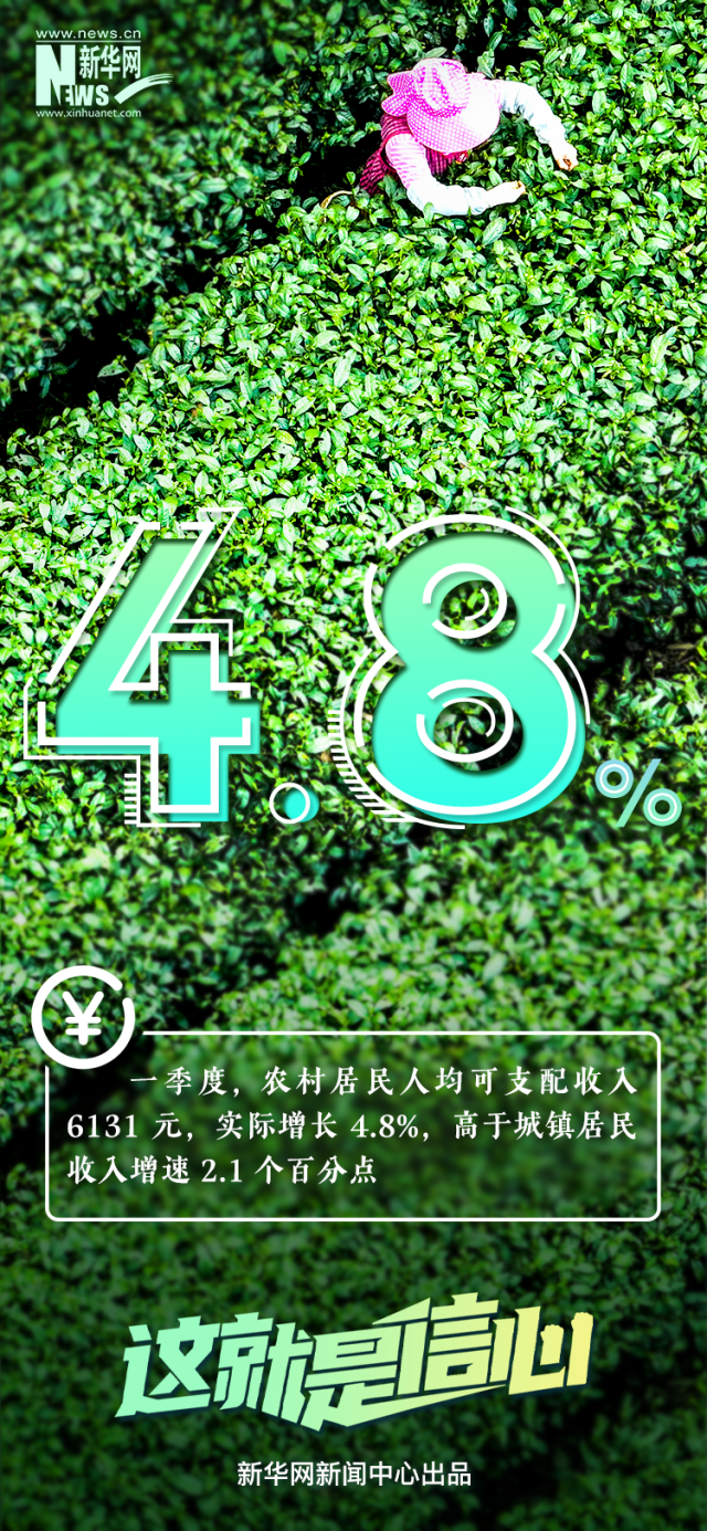 今年一季度,农村居民人均可支配收入6131元,实际增长4.8%;一季度全国城镇新增就业297万人,同比增加4%;一季度猪肉产量同比增长1.9%,畜禽和水产品全面增产,蔬菜和水果供应充足......刚刚过去的一季度,多项民生红利集中释放,跟随这组数据一起感知。