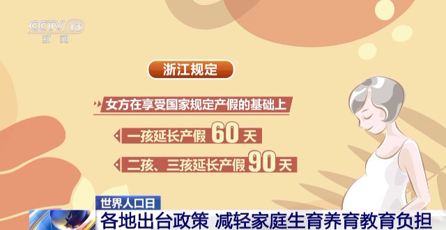 大多数省份都延长了产假,明确了育儿假。浙江规定,女方在享受国家规定产假的基础上,一孩延长产假60天,二孩、三孩延长产假90天。