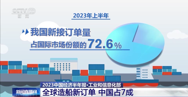 不仅造船业三大指标继续全球领跑,今年上半年我国新接订单量更是占国际市场份额的72.6%,这意味着中国造船业正逐渐在全球市场中掌握主动权。