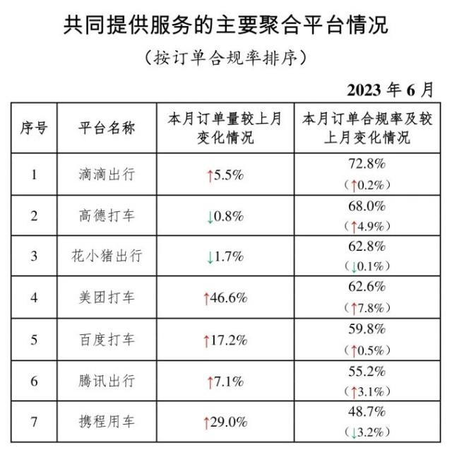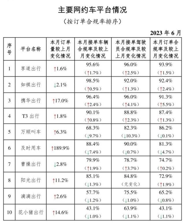 其中,面向乘客、与网约车平台公司共同提供服务的平台(俗称“聚合平台”)完成2.18亿单,环比上升4.0%。按订单合规率由高到低的分别是滴滴出行、高德打车、花小猪出行、美团打车、百度打车、腾讯出行、携程用车。