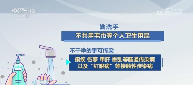 做好防蝇防鼠灭蚊工作,预防肠道和虫媒传染病。勤洗手,不共用毛巾等个人卫生用品。不干净的手可传染痢疾、伤寒、甲肝、霍乱等肠道传染病以及“红眼病”等接触性传染病。如出现发热、呕吐、腹泻、皮疹等症状要尽快就医。
